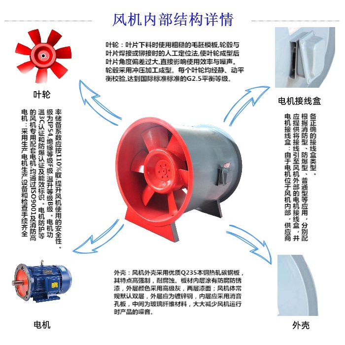 屋頂消防排煙風機試車時,應先啟動低速,并檢查旋轉方向是否正確;起動高速時必須待風機靜止后再起,以防高速反向旋轉,引起開關跳閘及電機受損。屋頂消防排煙風機達到正常運速時,應檢測風機各相輸入電源是否正常,風機的運行電流不能超過其額定電流,若運行電流超過其額定電流,應檢查供給風機的電壓是否正常。